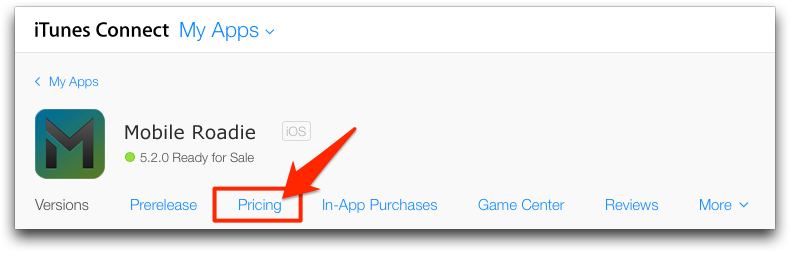 3. Select the App you would like to schedule a release date for, then hit 'Pricing' on the following screen