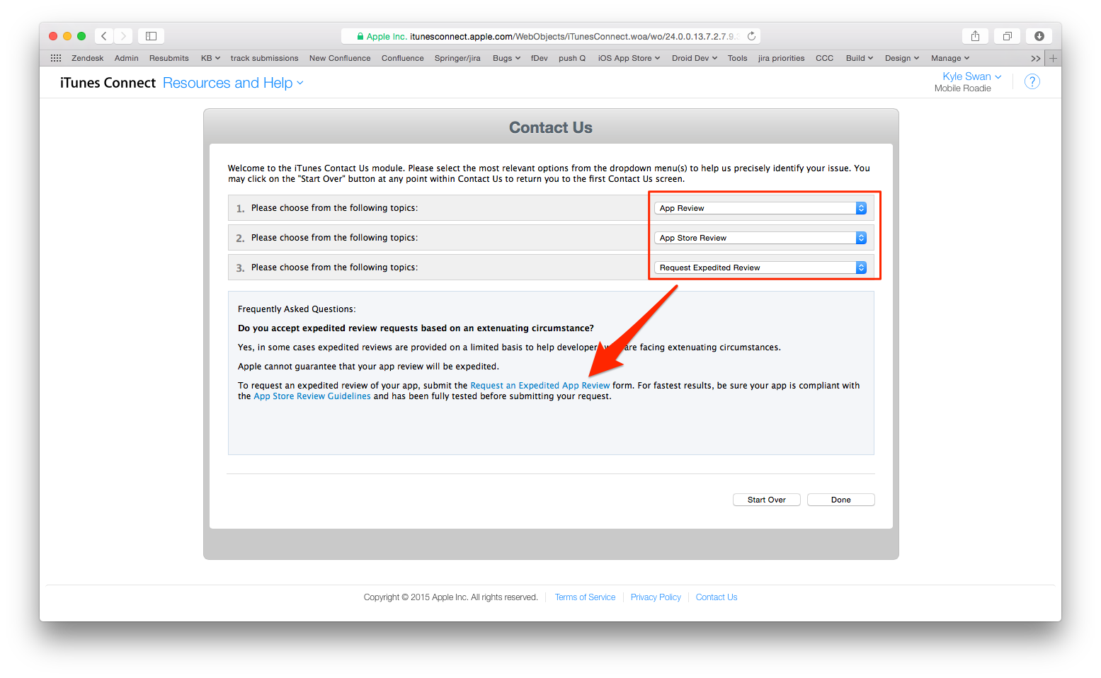 4. Fill in the requested information and click 'Submit' to send your request to Apple! They will review and respond to the request and let you know if they are able to expedite the review of your app!