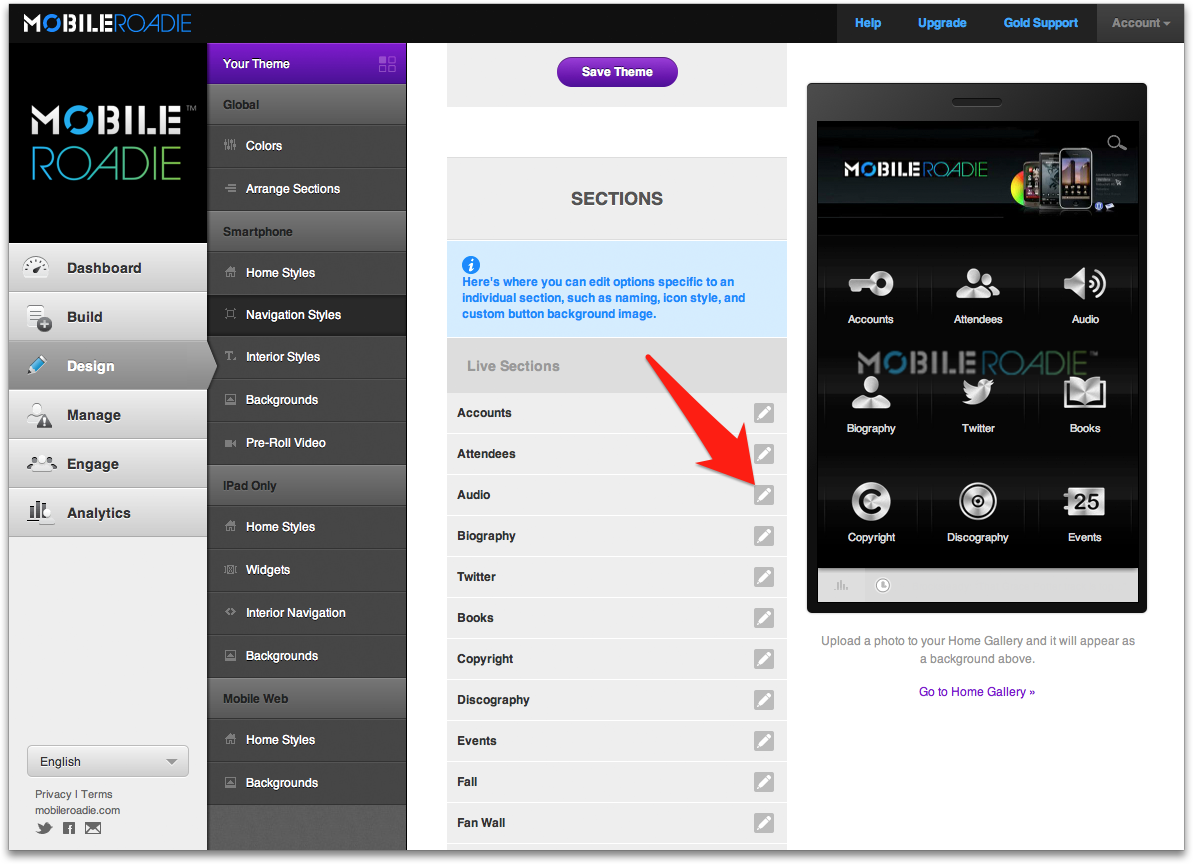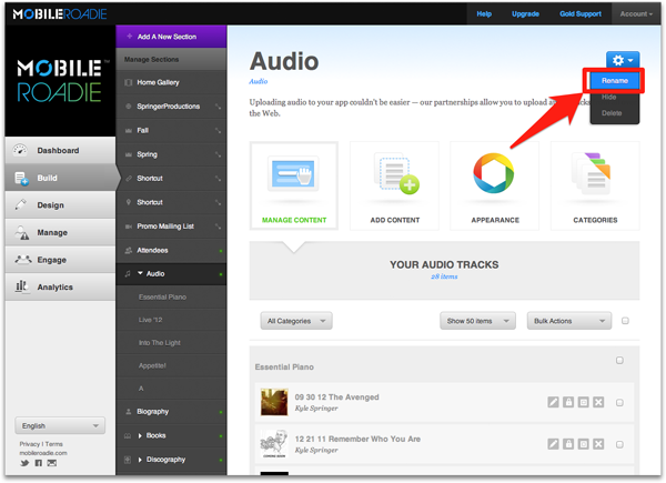 The default section and iPad widget names in your Mobile Roadie apps can be re-named to better identify the content associated with that section, or to better align your sections with your business, band, or brand!