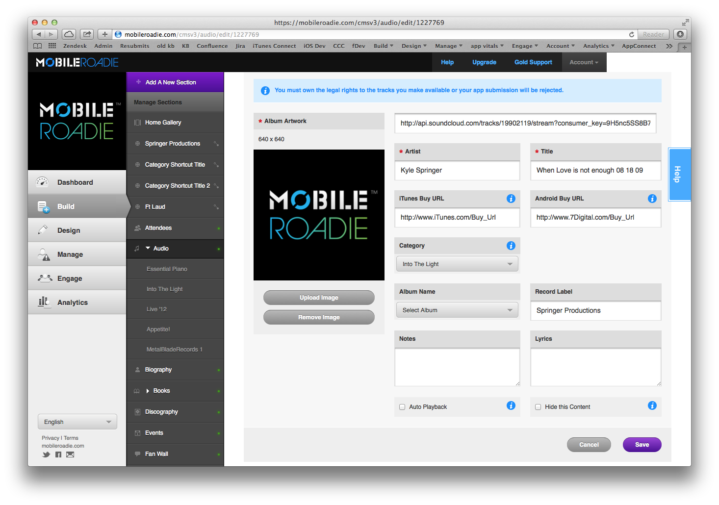 3. To change information, simply enter new text into the entry fields, or click the Upload Image button to select an image saved on your computer, then hit the Save button