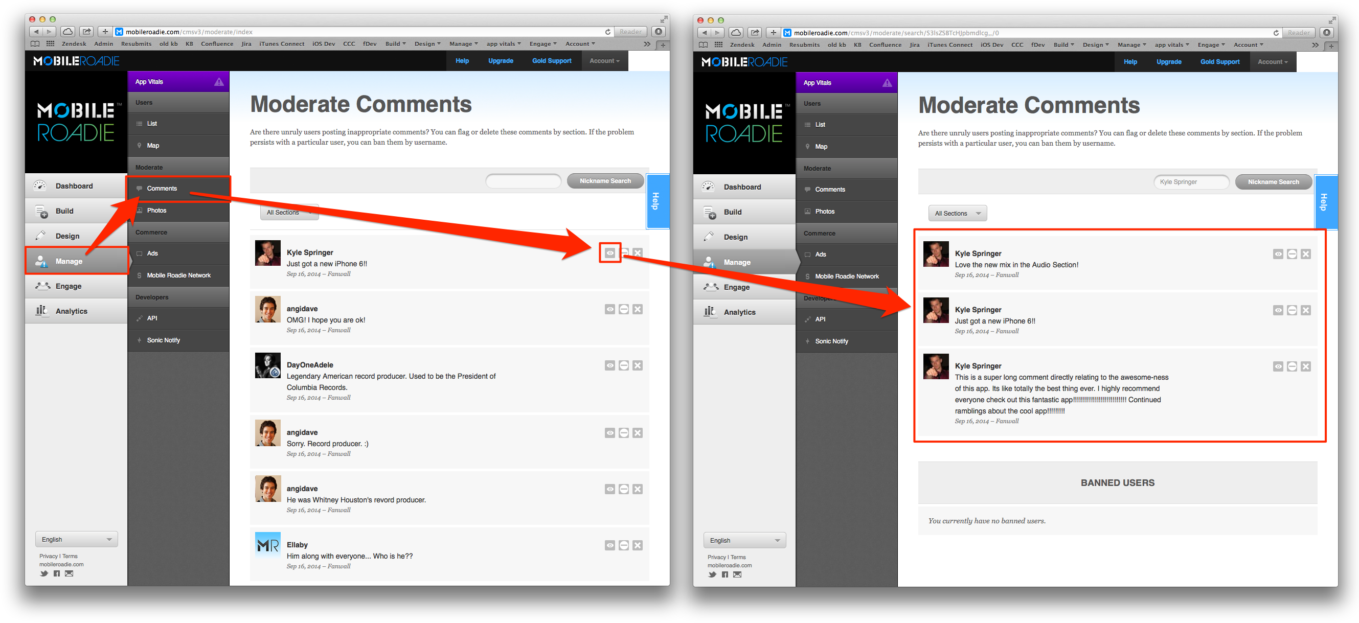 Preview Button can be found in the Manage Menu and Analytics Menu. The preview button allows past Weekly Emails to be viewed and displays all comments from a single user.