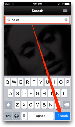 2. Enter a search string (see below for recommendations and tips on searching within the app)
