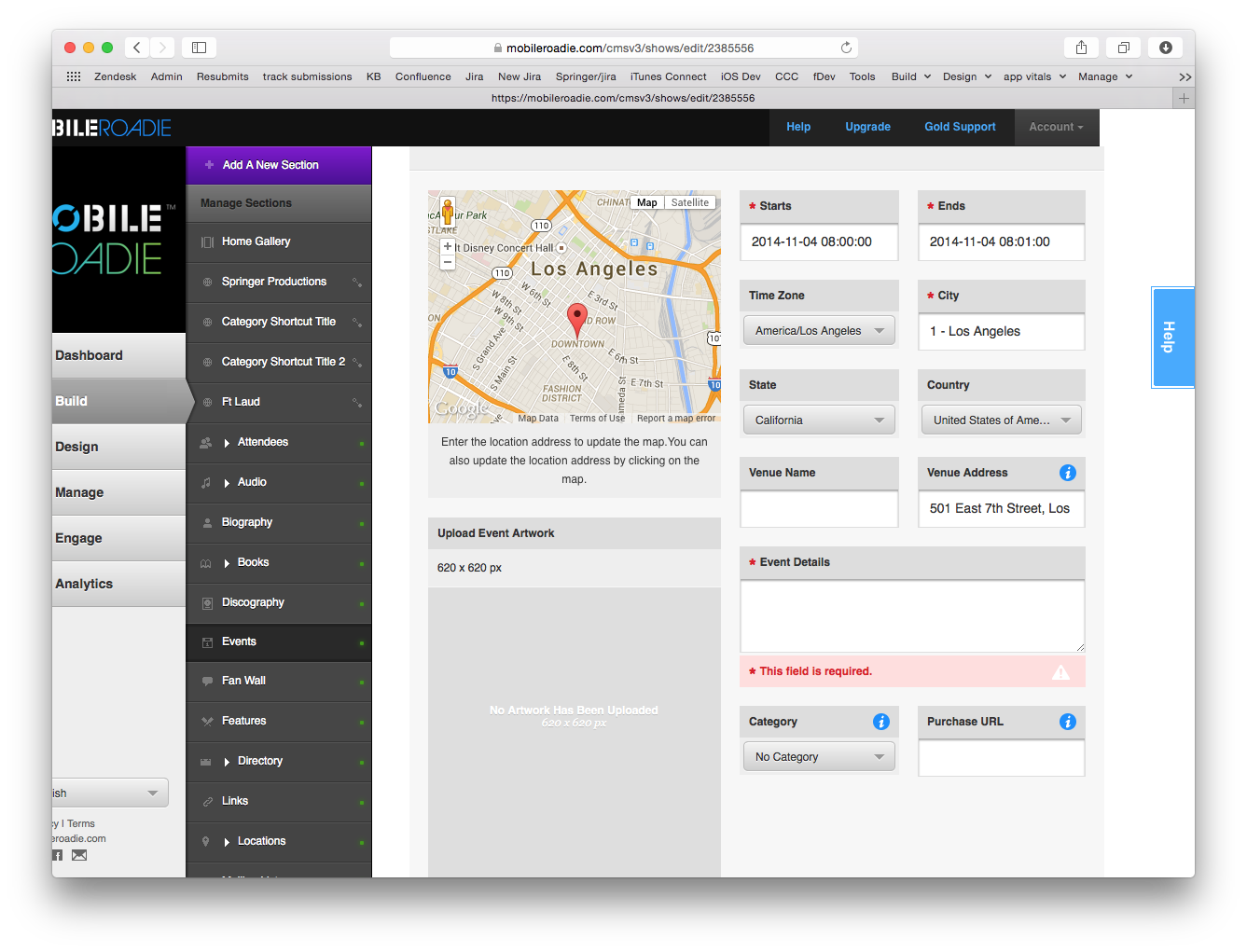 Many areas of the CMS will require certain information or images to be uploaded. These fields are marked in the CMS with the Required Icon next to the field name