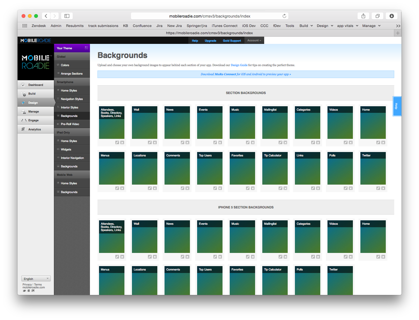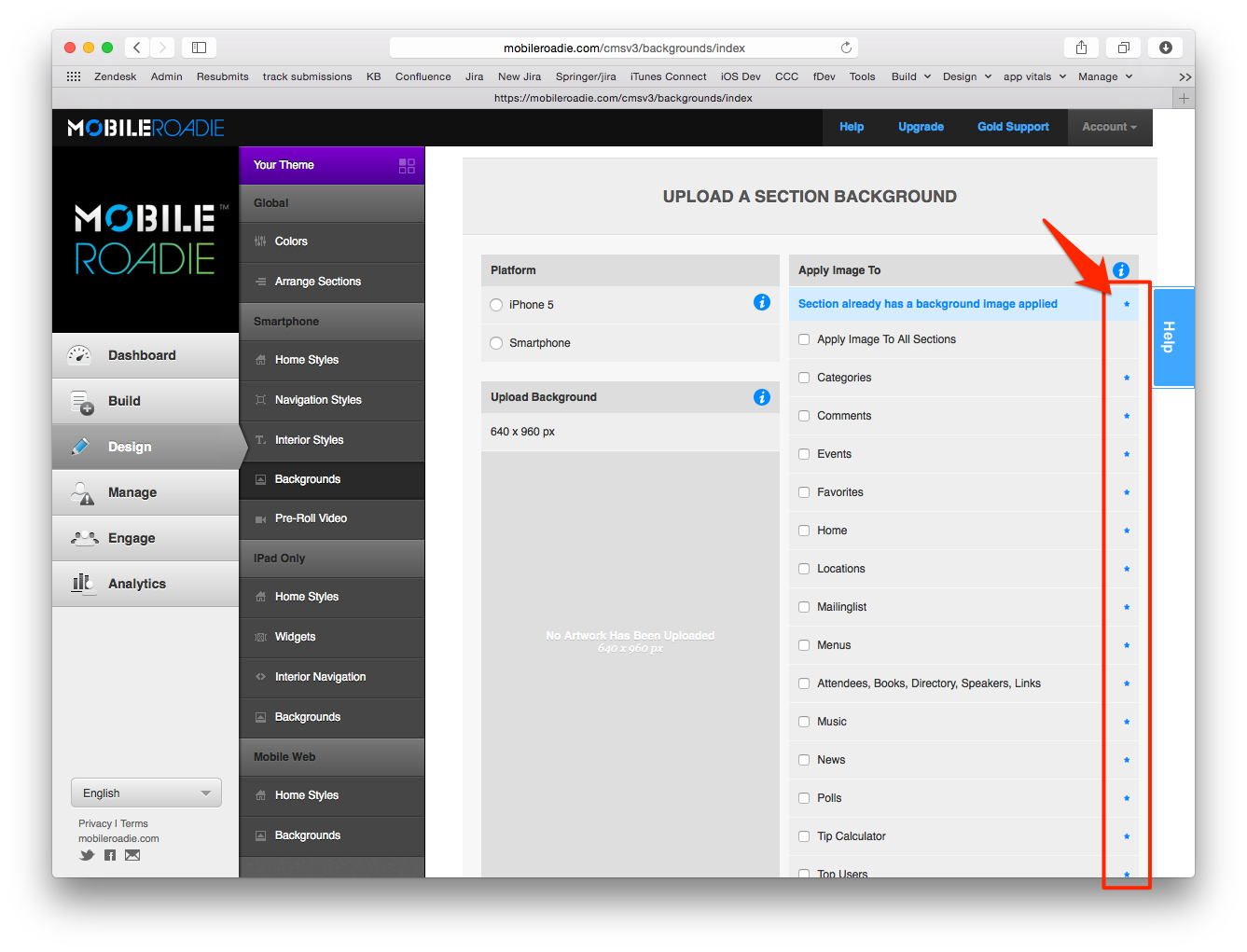 1. Navigate to Design>Smartphone>Backgrounds or Design>iPad Only Backgrounds